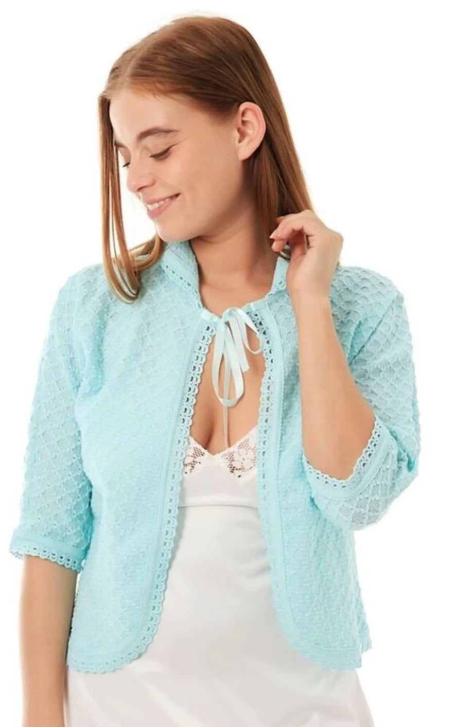 Slenderella, Pale blue, houndstooth knit, 45" button up housecoat