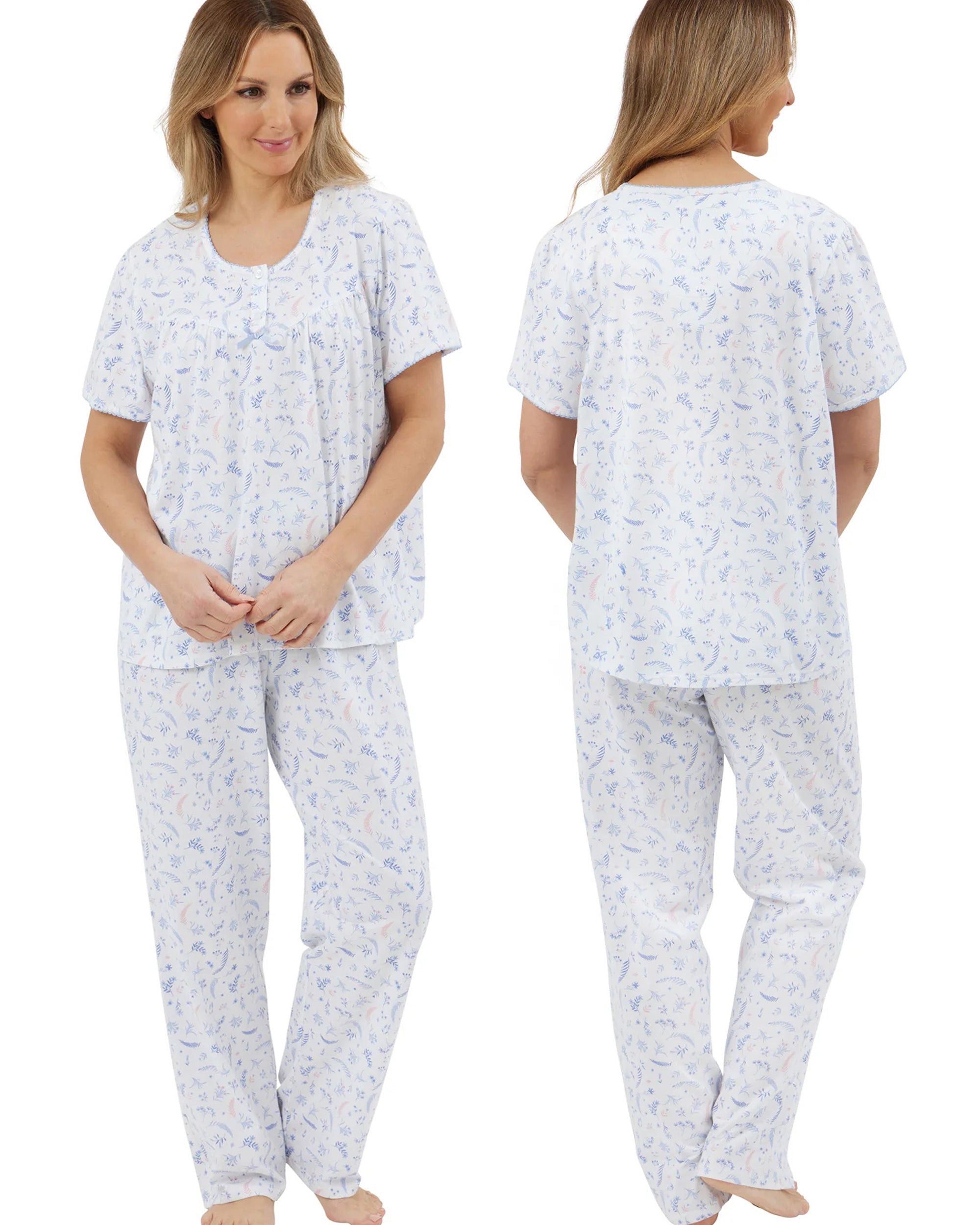 Blue 'Harvest' print 100% cotton jersey short sleeve pyjamas