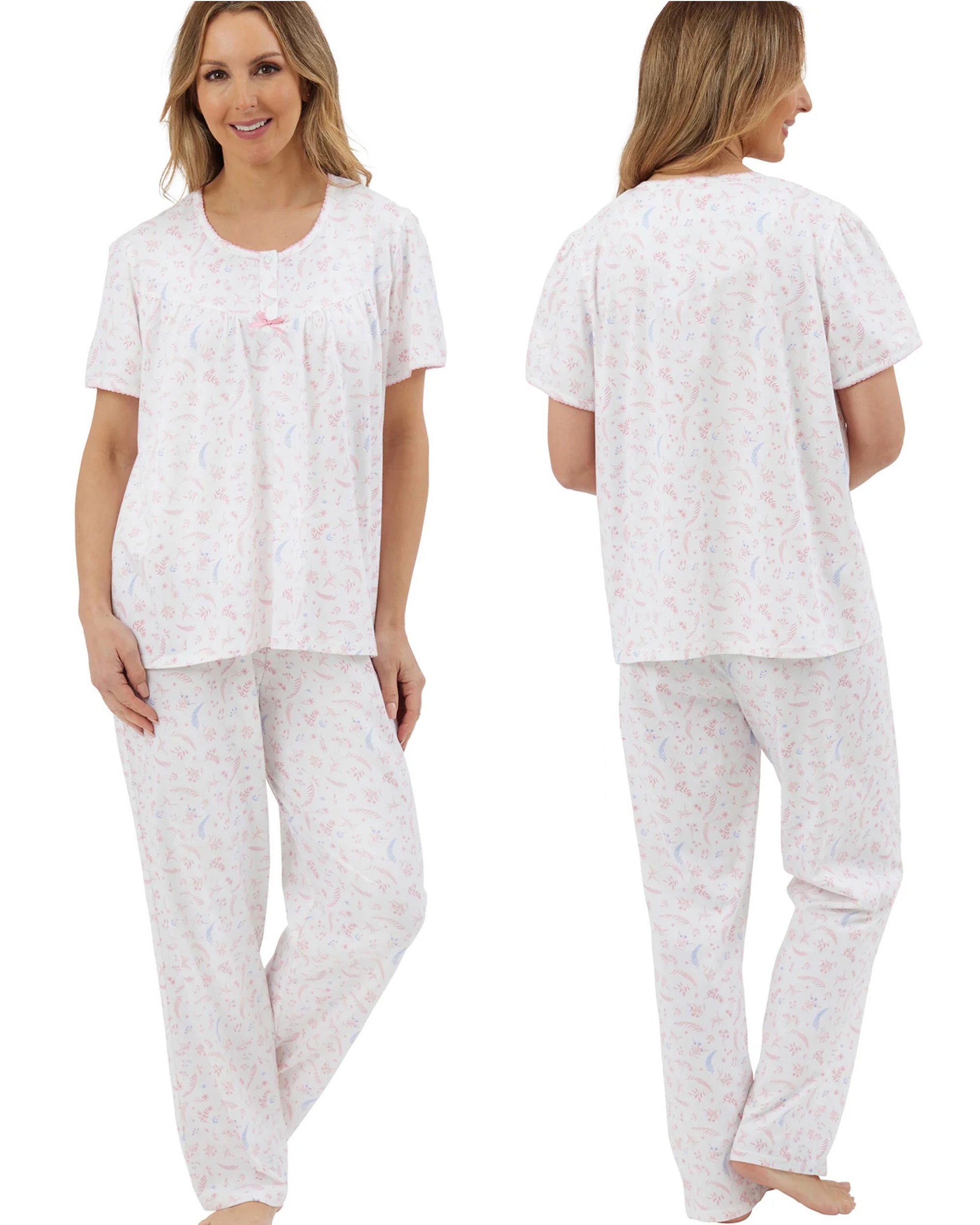 Pink 'Harvest' print 100% cotton jersey short sleeve pyjamas